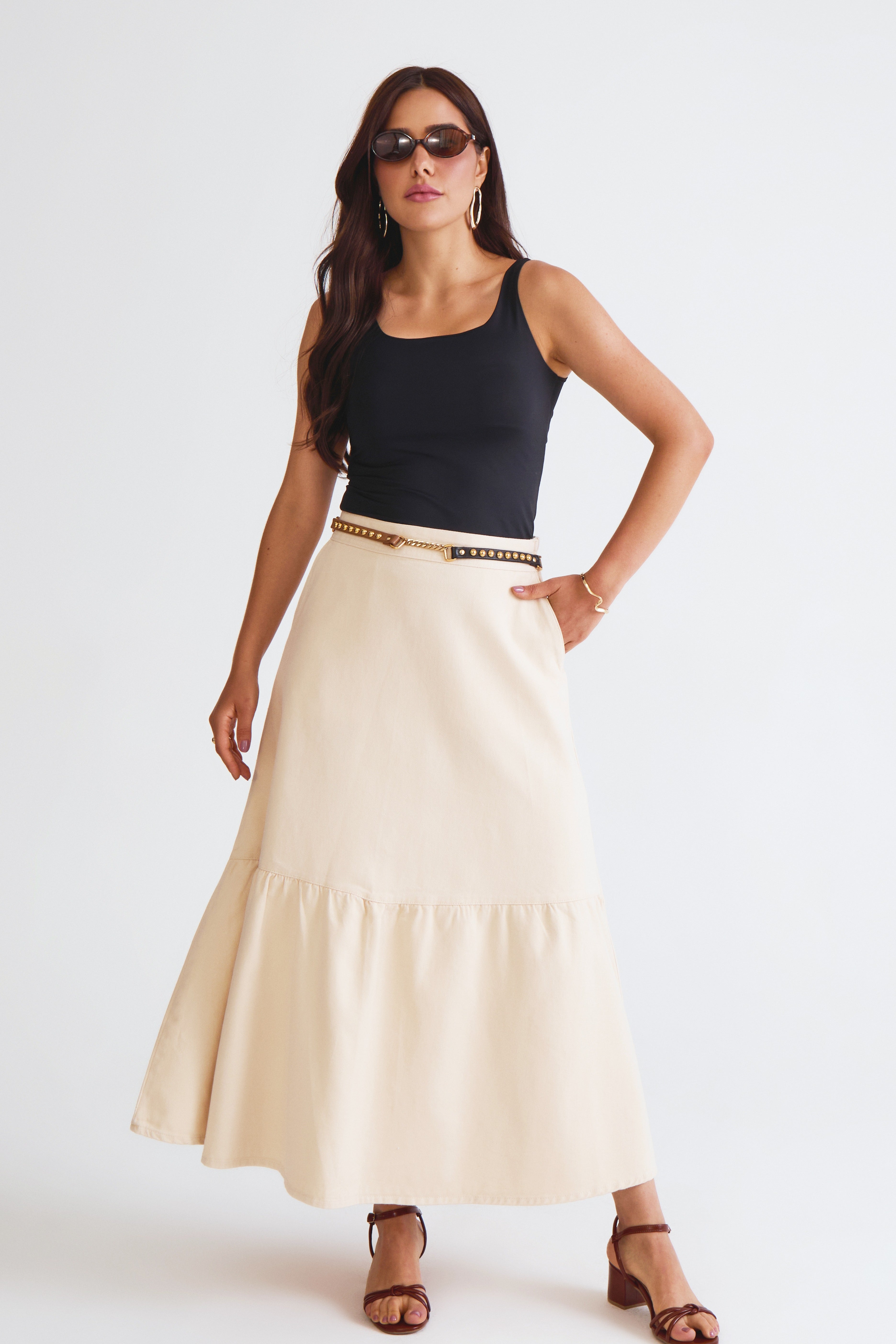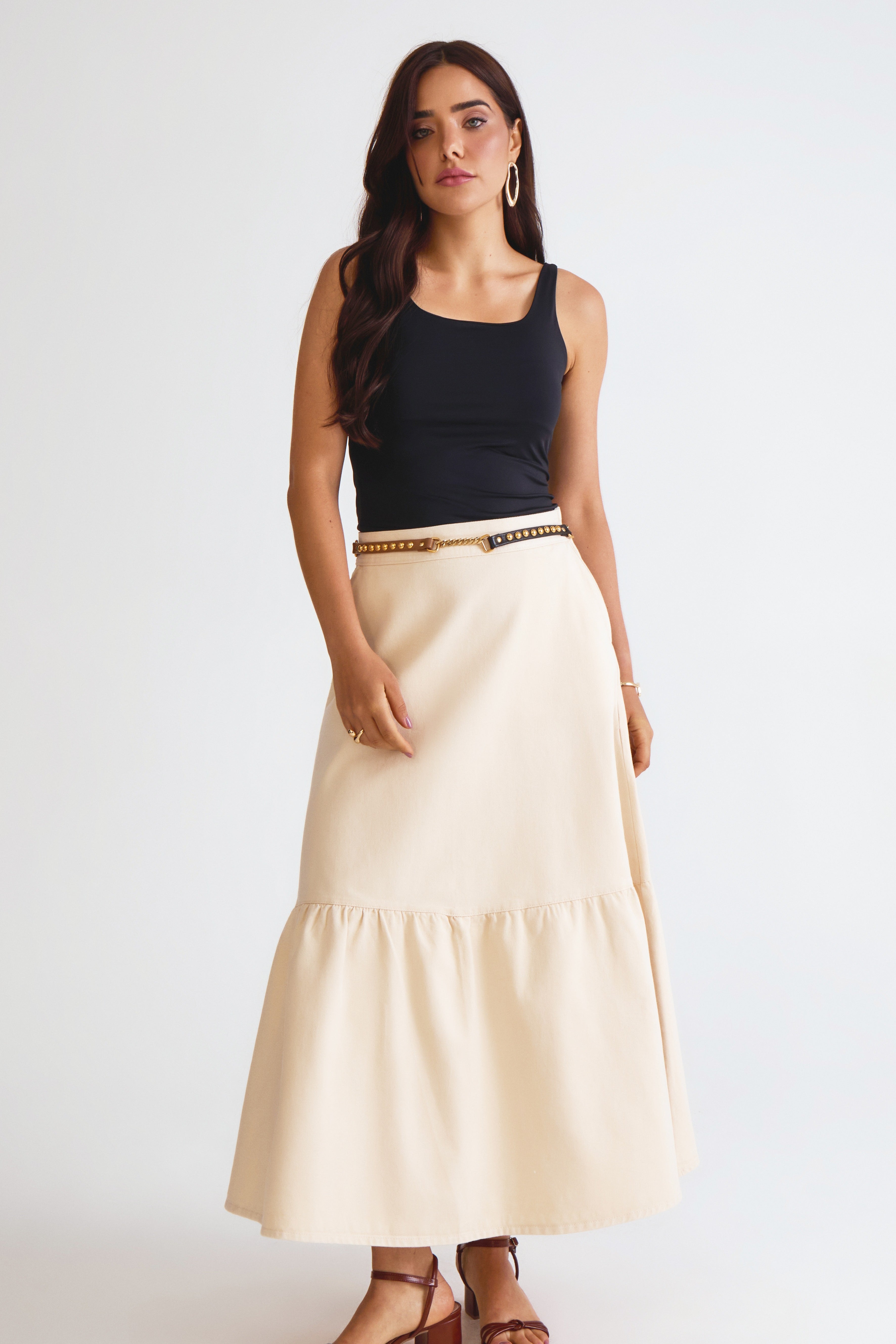 Saia Sarja Midi Cintura Alta Volumes