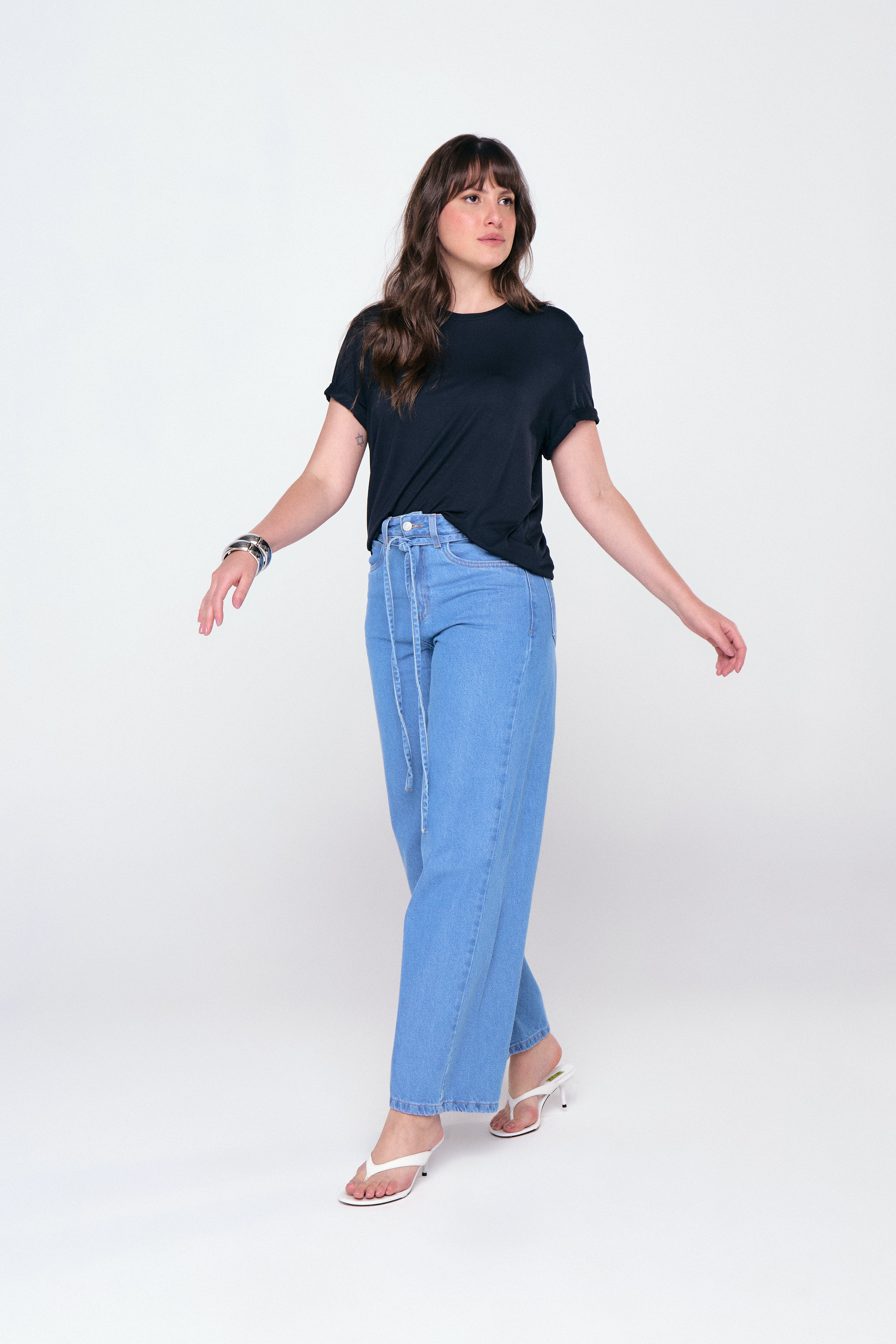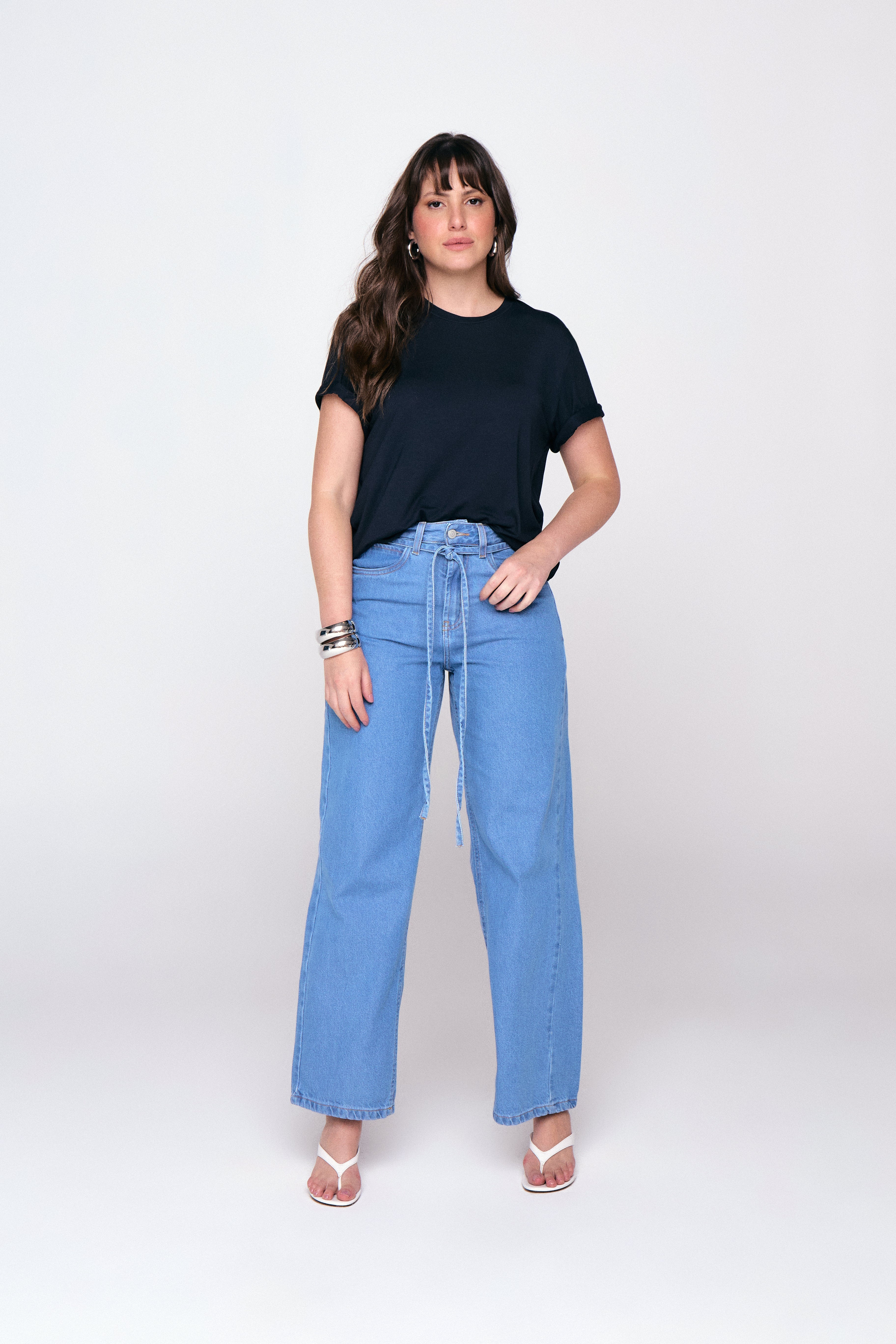 Calça Baggy Com Cinto - Jeans Claro
