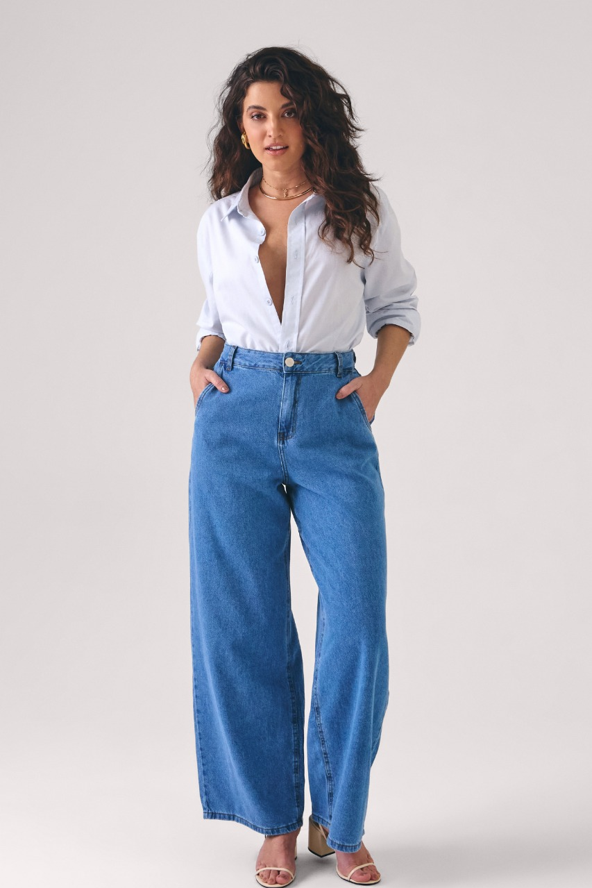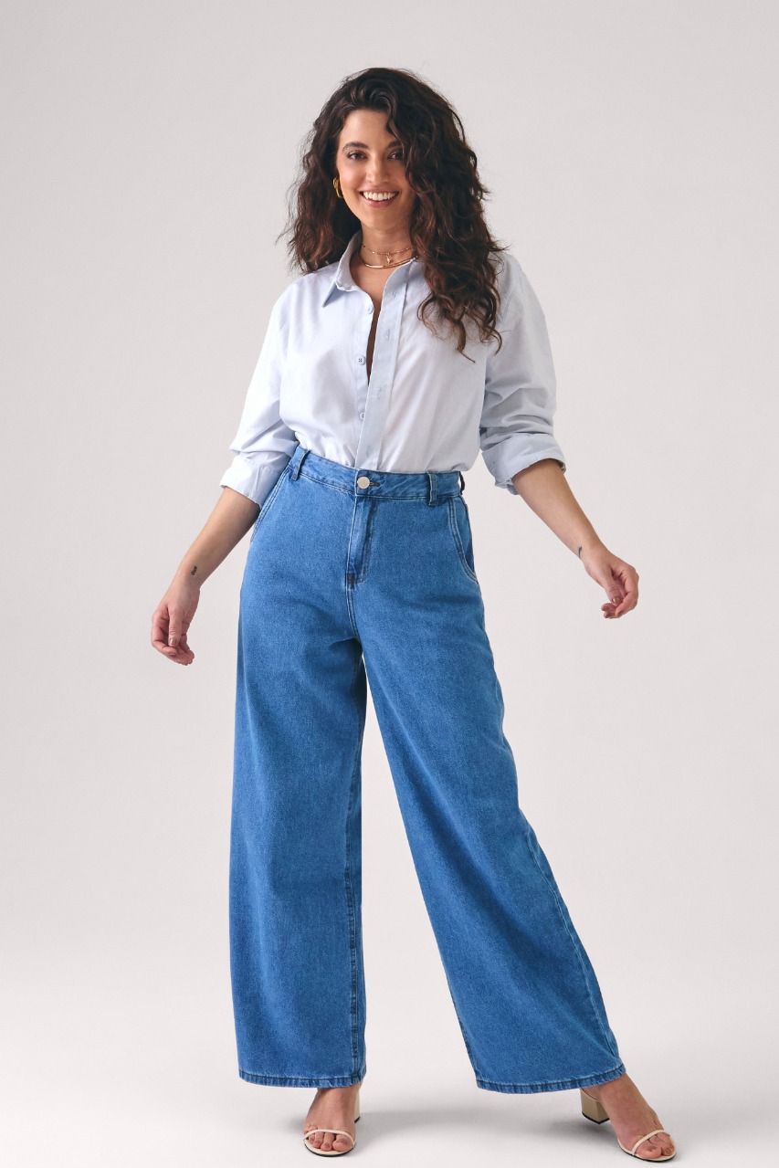 Calça Wide Leg Feminina Rio Branco Cintura Alta