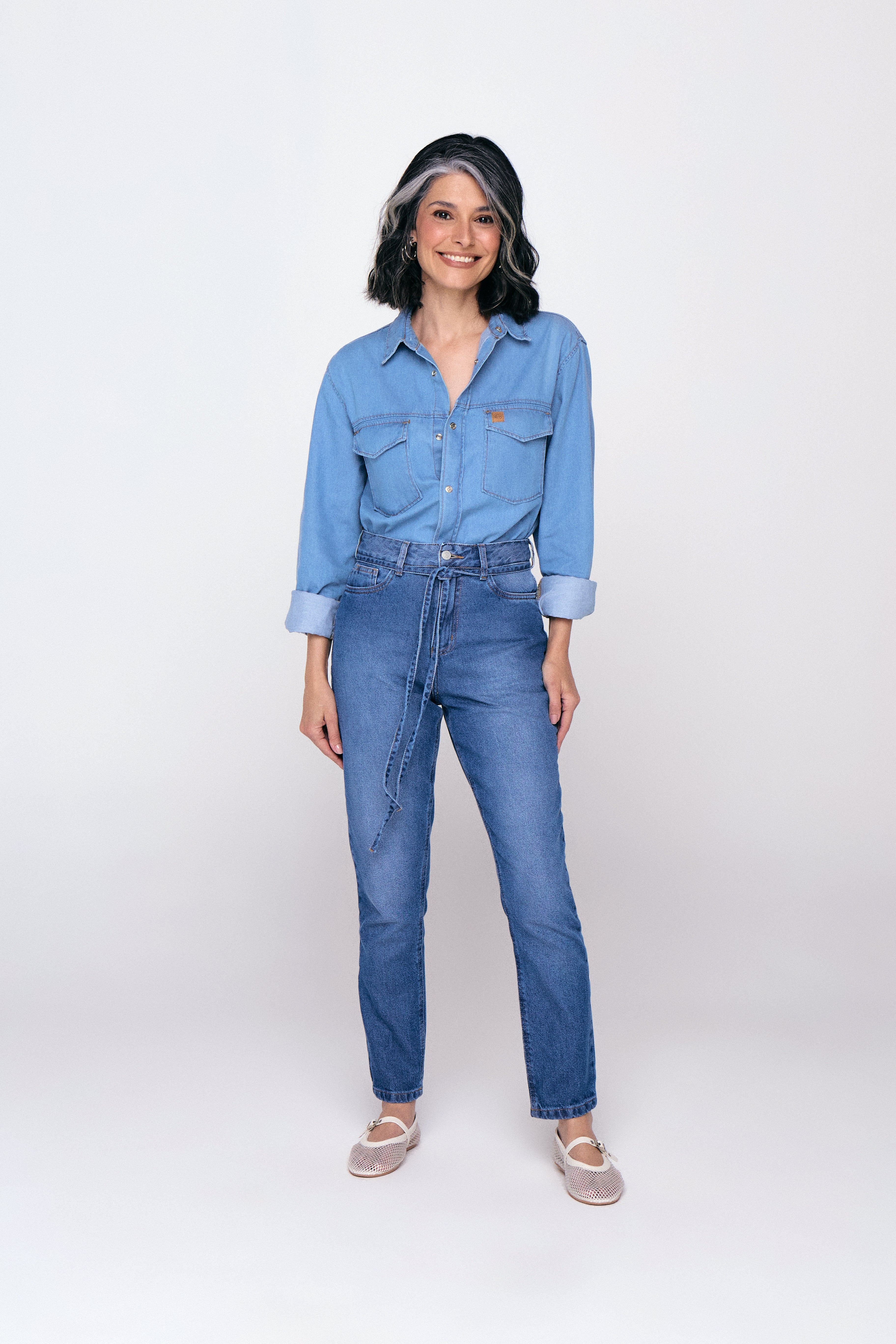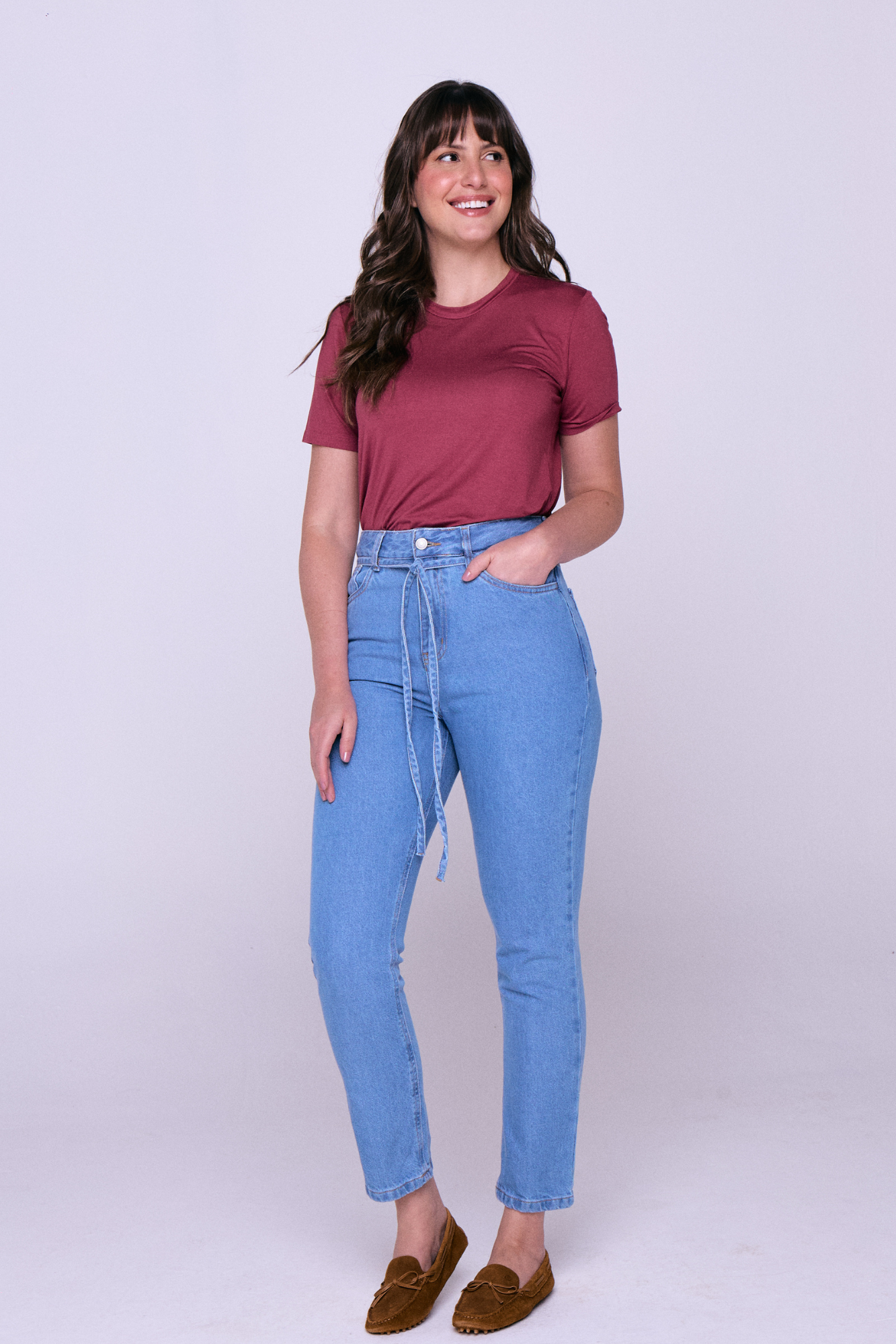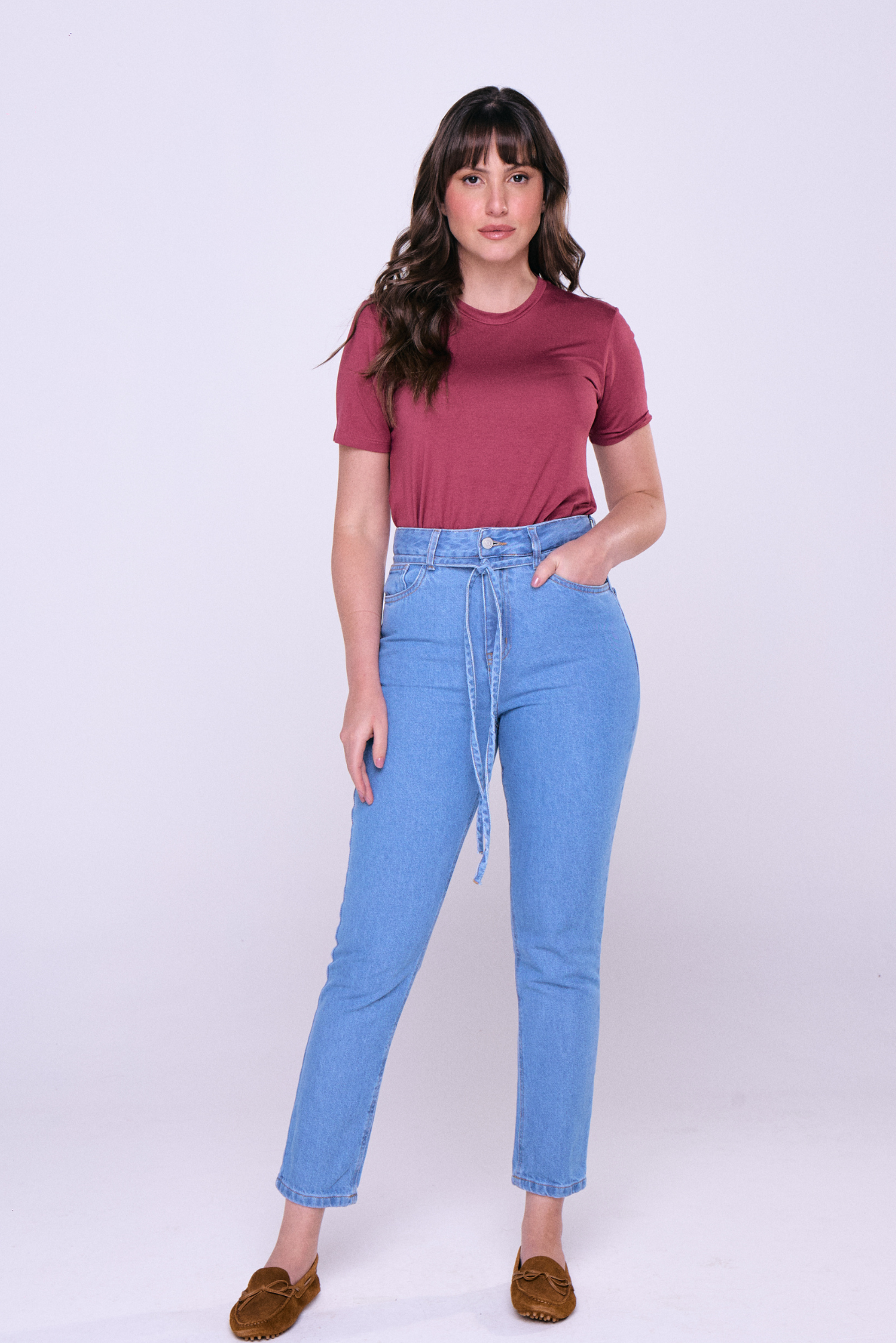Calça Jeans Mom Com Cinto - Jeans Claro