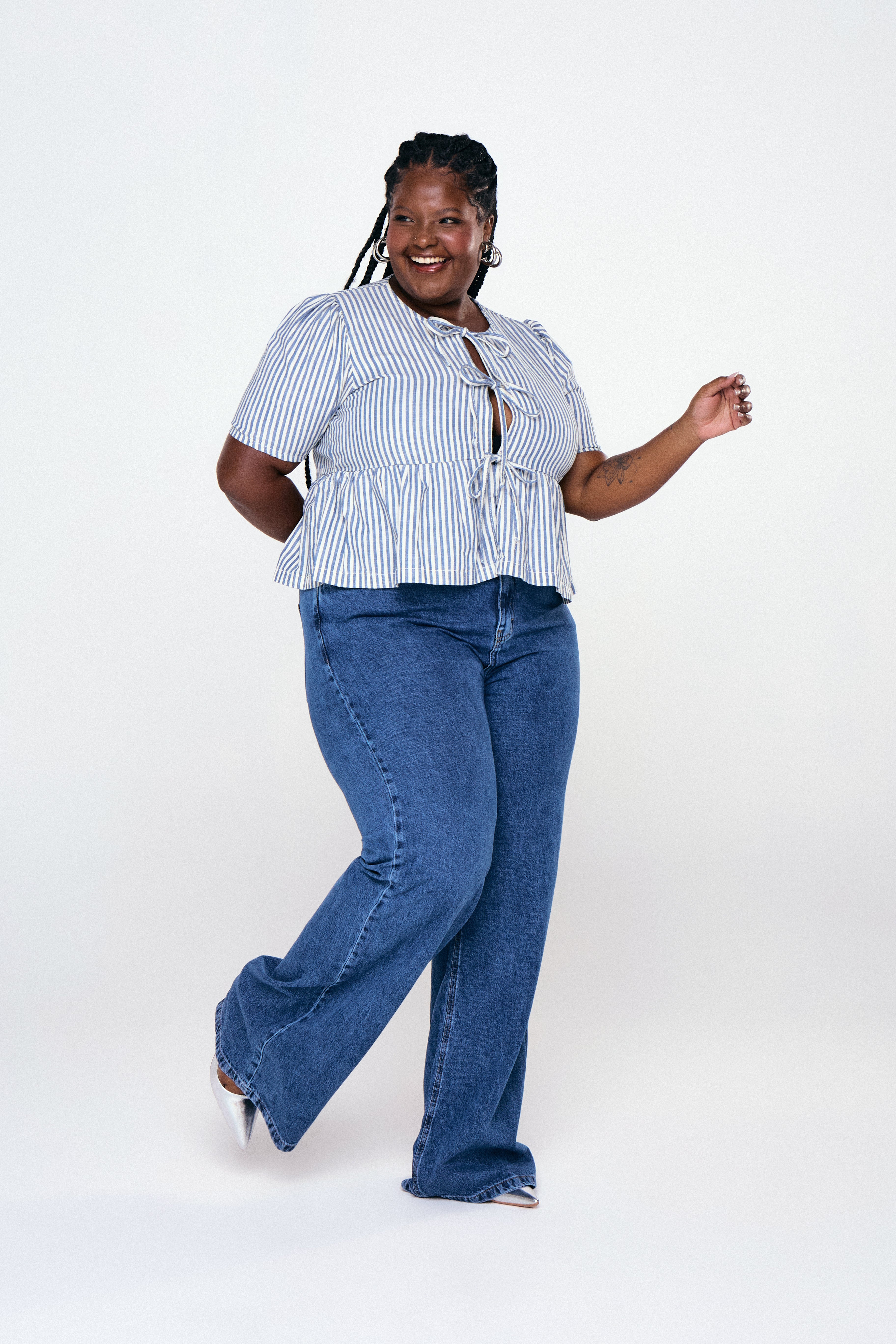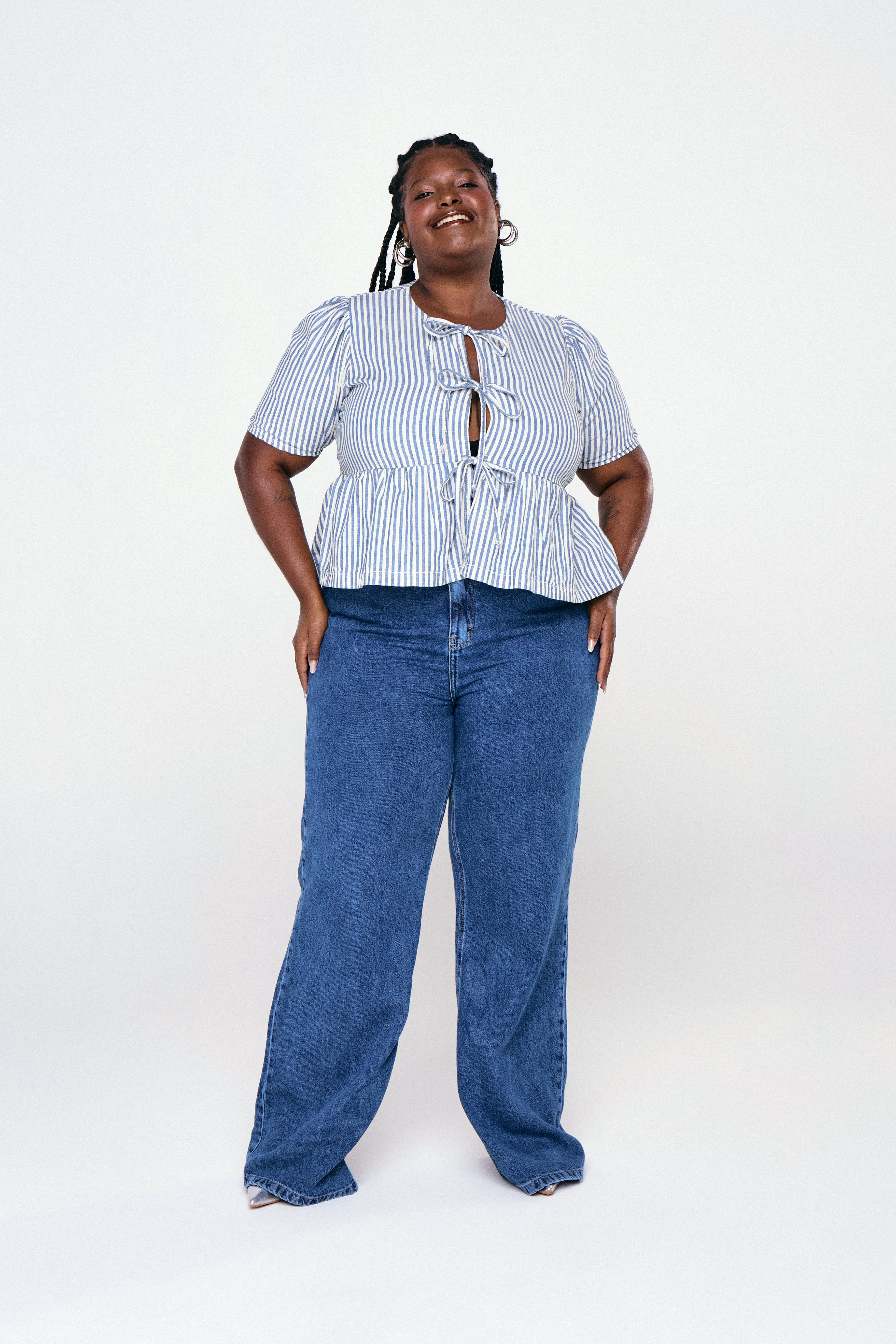 Clássica e versátil, a calça reta plus size traz cintura média/alta e caimento que valoriza sem marcar. Confortável e perfeita para compor looks do dia a dia.