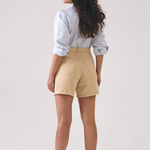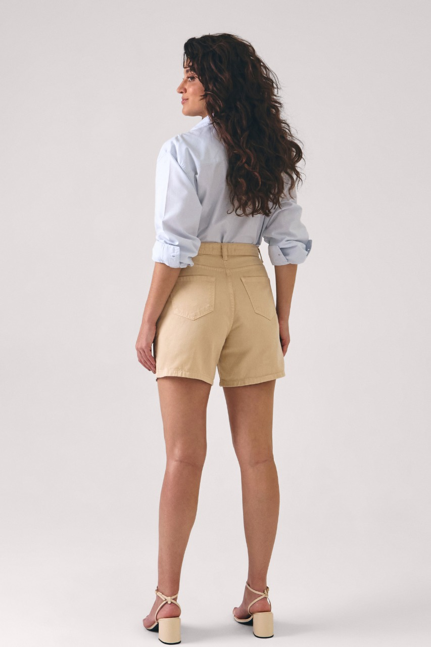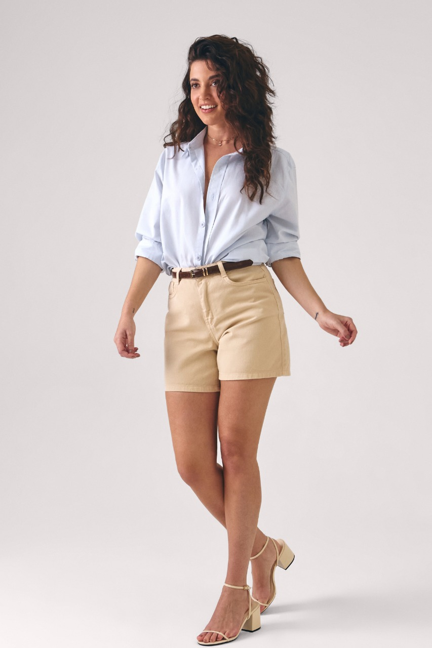 Shorts Feminino de Sarja Areia conforto, estilo e versatilidade em uma peça atemporal. Confeccionado em 100% algodão, o shorts oferece toque macio, respirabilidade e caimento estruturado. O tom areia é neutro e sofisticado, permitindo combinações fáceis com diferentes cores e estilos de blusas, camisas ou croppeds.