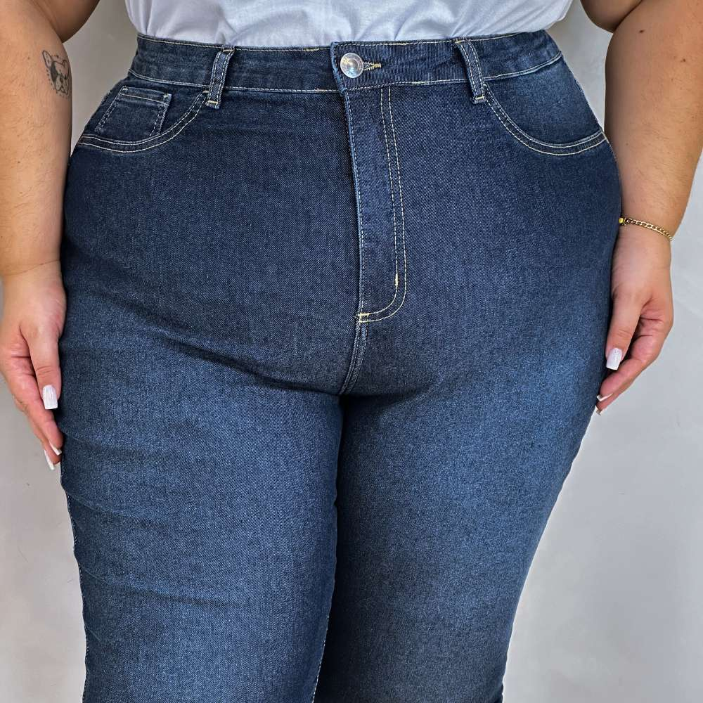 Calça Super Skinny Jeans Plus Size Cintura Alta Azul Médio