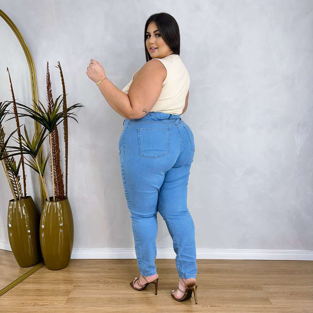 Calça Super Skinny Jeans Plus Size Cintura Alta Azul Claro