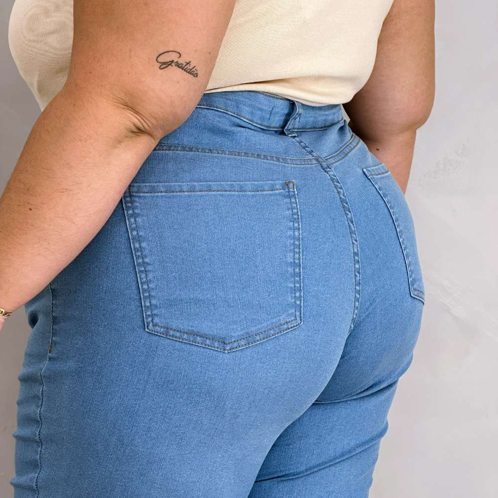 Calça Super Skinny Jeans Plus Size Cintura Alta Azul Claro