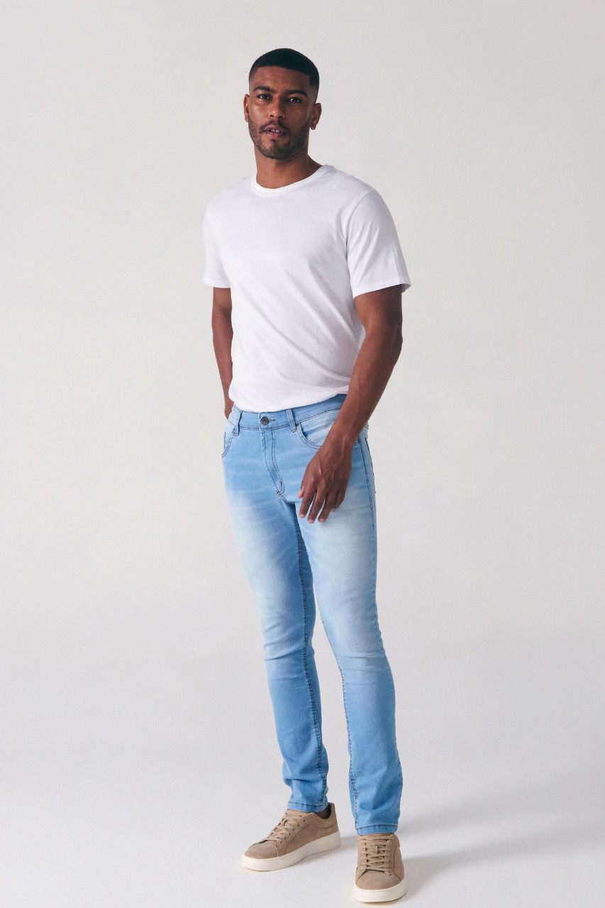 Calça Slim Masculina Jeans Cropped Barra Dobrada