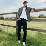 Calça masculina five pockets, combinando estilo e funcionalidade. Confeccionada para máximo conforto, conta com bolsos traseiros com detalhe de recorte, passantes para cinto e fechamento seguro por zíper e botão. Versátil e moderna, é ideal para compor looks casuais ou sofisticados com praticidade.