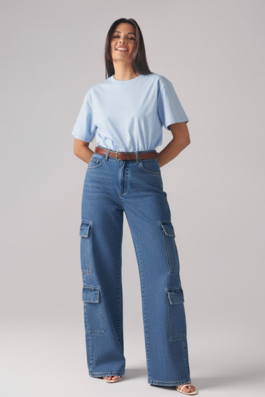 Calça Wide Leg Cargo