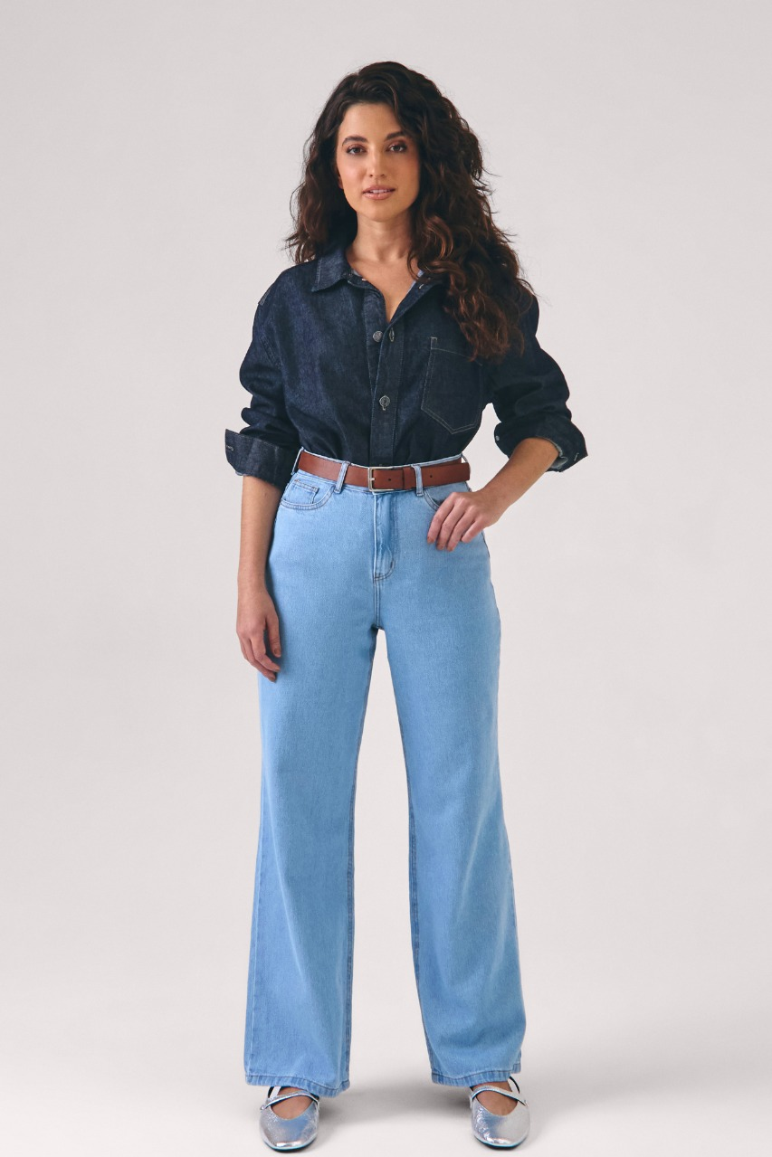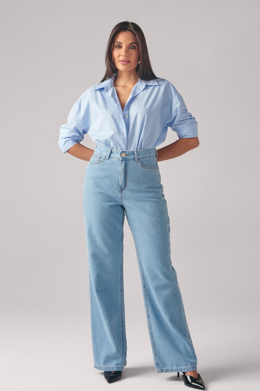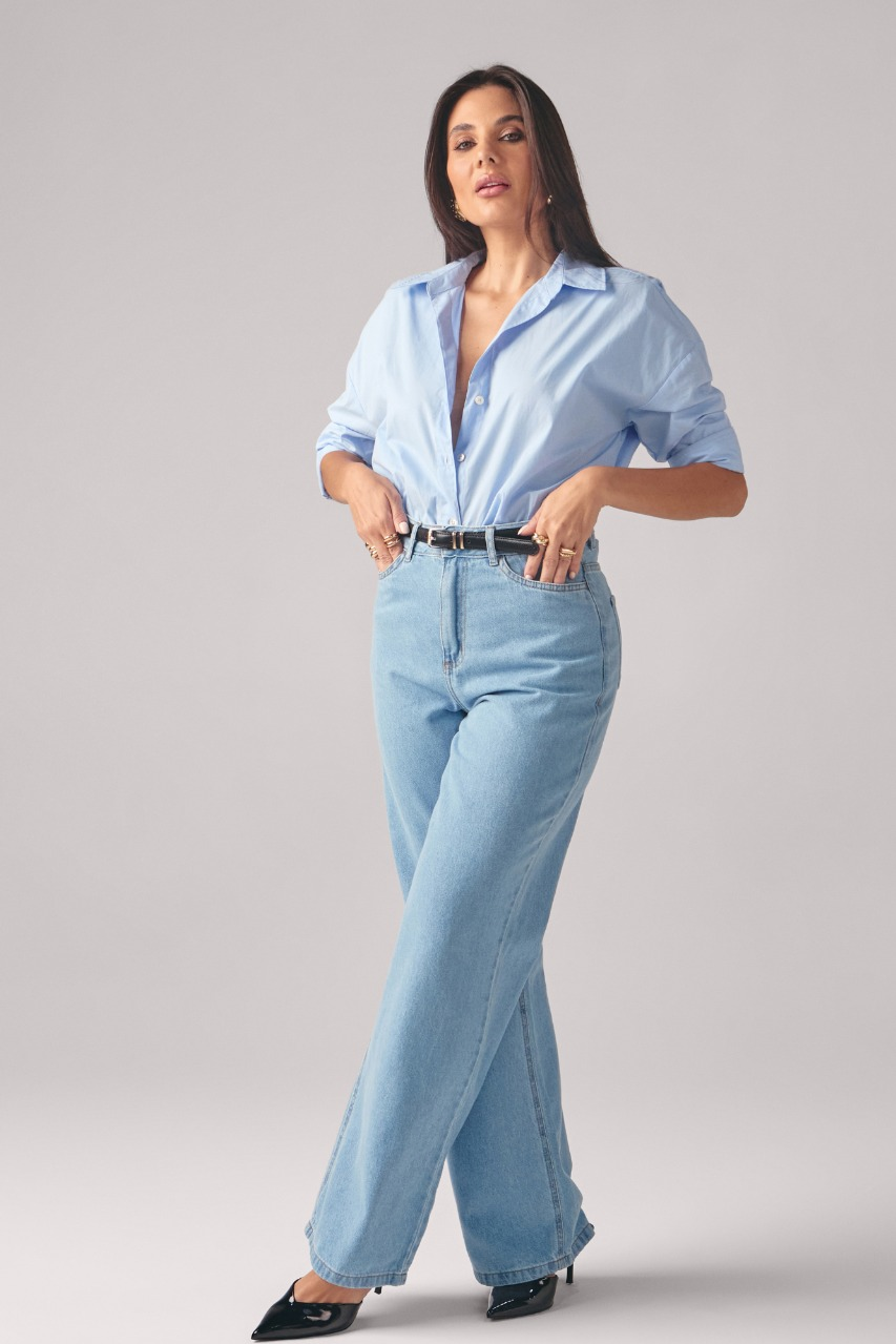 Calça Feminina Wide Leg - Jeans Claro