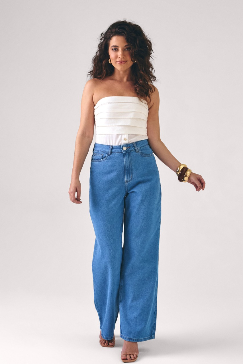 Calça Feminina Wide Leg - Jeans Médio