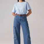 A calça cargo jeans média é aquela peça prática e estilosa que deixa qualquer look mais interessante.