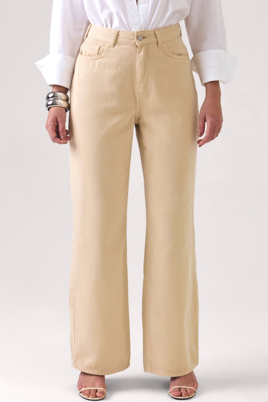 Calça Wide Leg Feminina Areia estilo moderno aliado ao conforto do algodão. Confeccionada em 100% algodão, a peça oferece caimento estruturado e respirabilidade, garantindo conforto durante todo o dia. O modelo wide leg proporciona um visual sofisticado e atual, alongando a silhueta e trazendo leveza ao look.