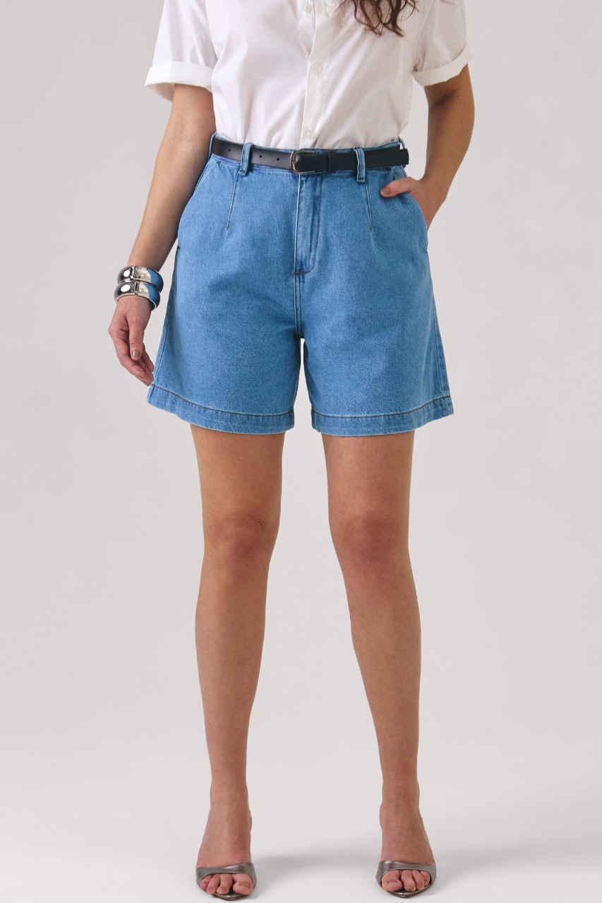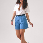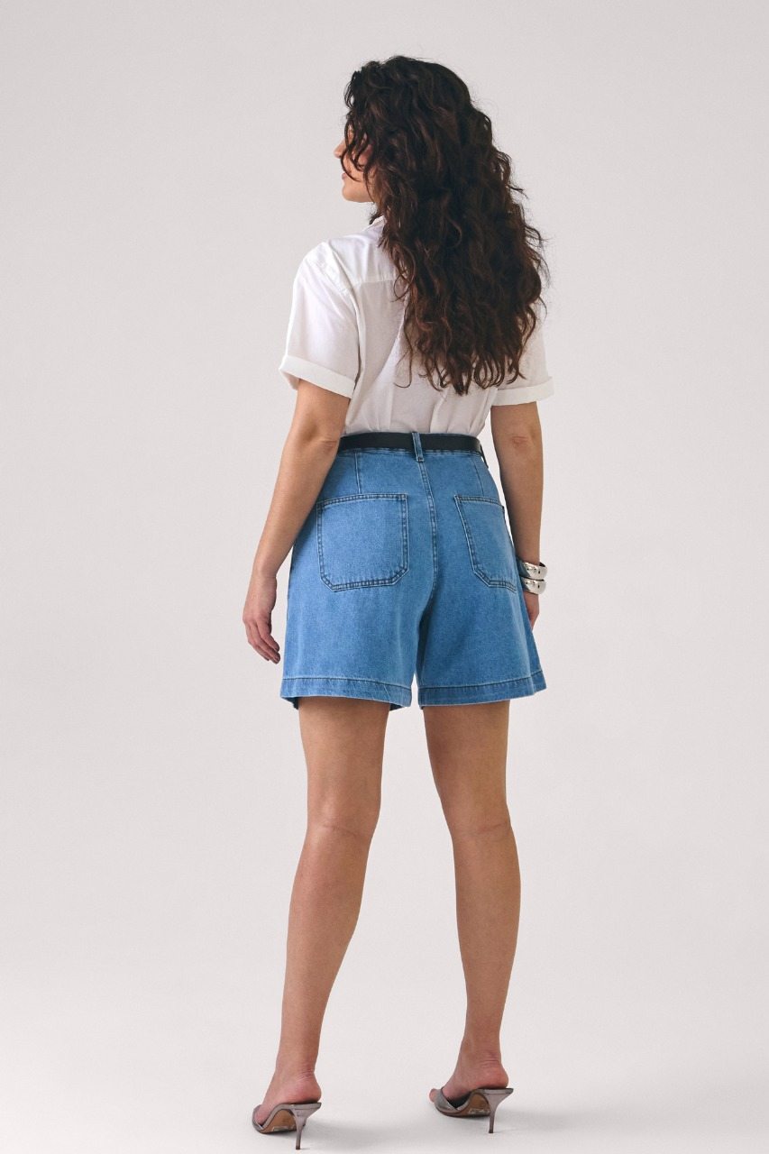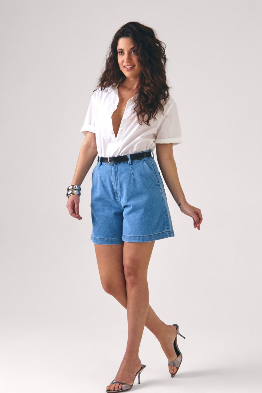 Bermuda Feminina Alfaiatada com Cinto elegância e conforto em uma peça versátil para o dia a dia ou ocasiões especiais. Confeccionada em 100% algodão, a bermuda oferece caimento estruturado, toque macio e respirabilidade, garantindo frescor e praticidade. O cinto no mesmo tecido valoriza a cintura e acrescenta um detalhe sofisticado ao design.