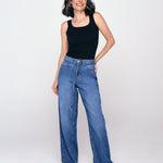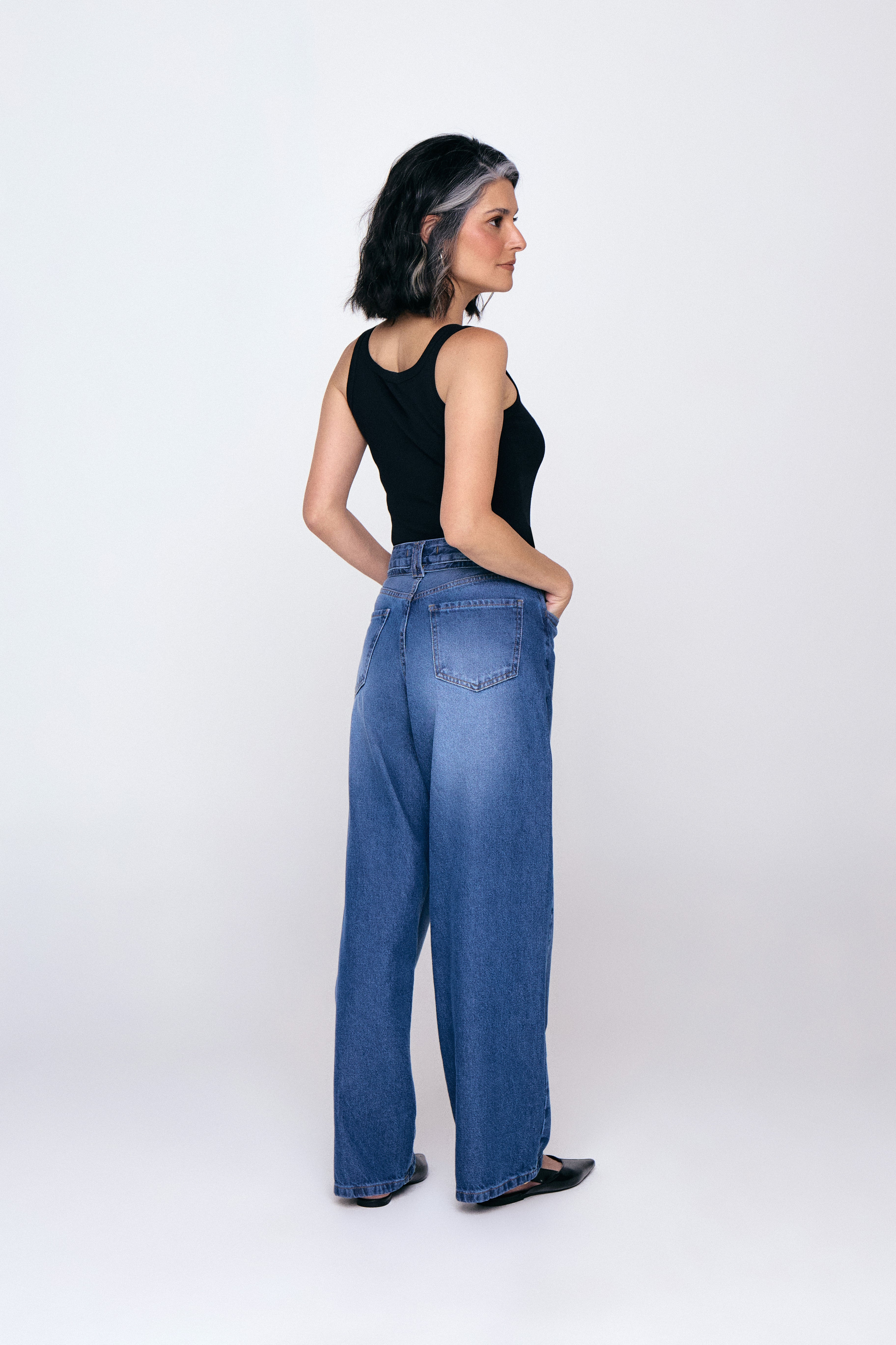 Calça jeans baggy em 100% algodão, com caimento estruturado e shape confortável. Acompanha cinto, trazendo mais estilo e ajuste ao look.
