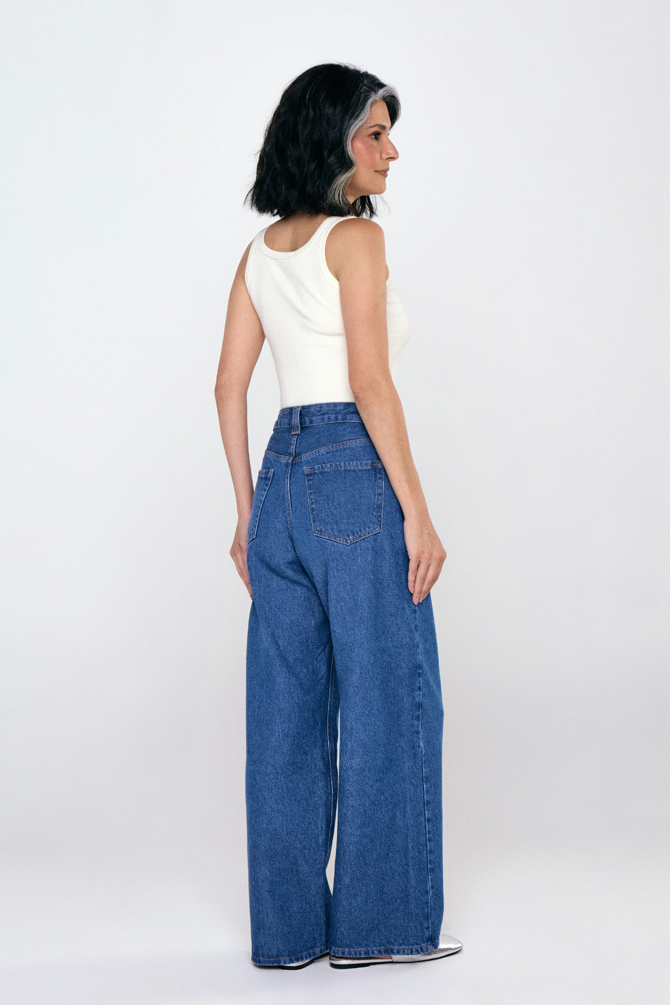É versátil e combina facilmente com diferentes peças do guarda-roupa, desde camisetas e tênis até produções mais fashionistas com salto e blazer. A modelagem baggy traz pernas amplas e cintura ajustada, criando equilíbrio entre conforto e estilo urbano.