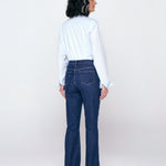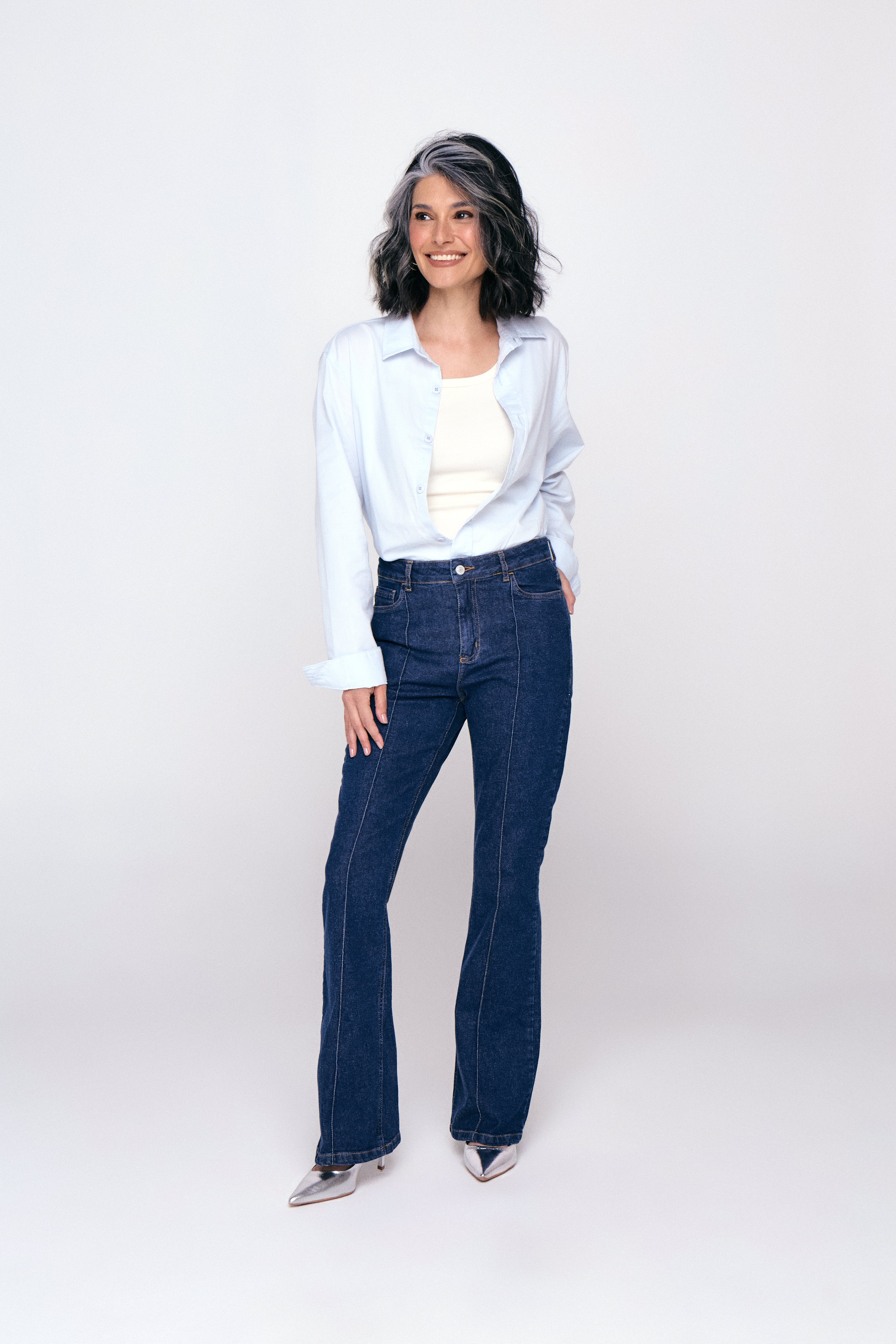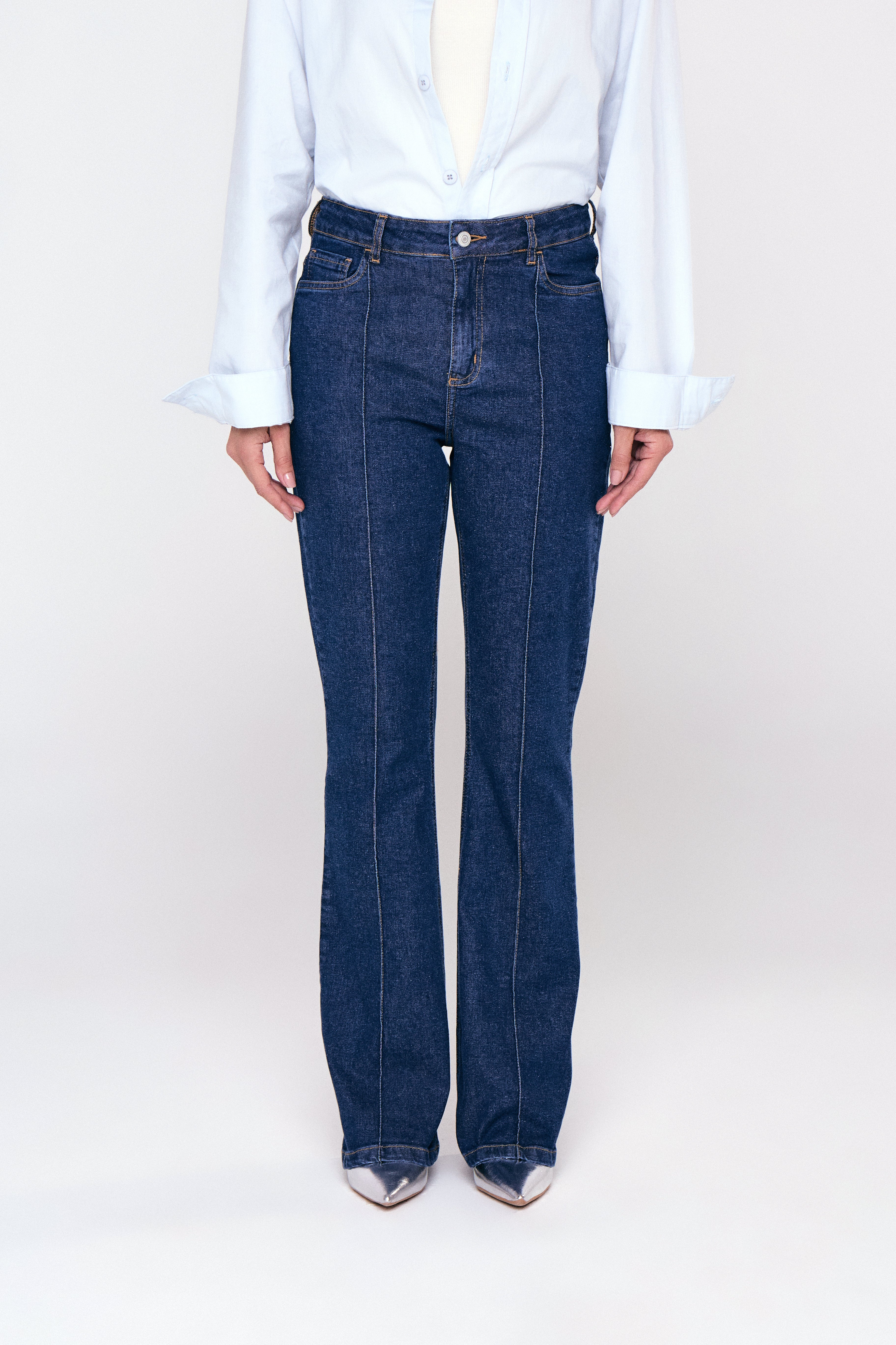 Calça jeans boot cut em 100% algodão, com caimento estruturado e detalhe de nervura que alonga a silhueta. Moderna e versátil para compor looks do dia a dia.