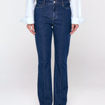 Calça Boot Cut Com Nervura - Jeans Escuro