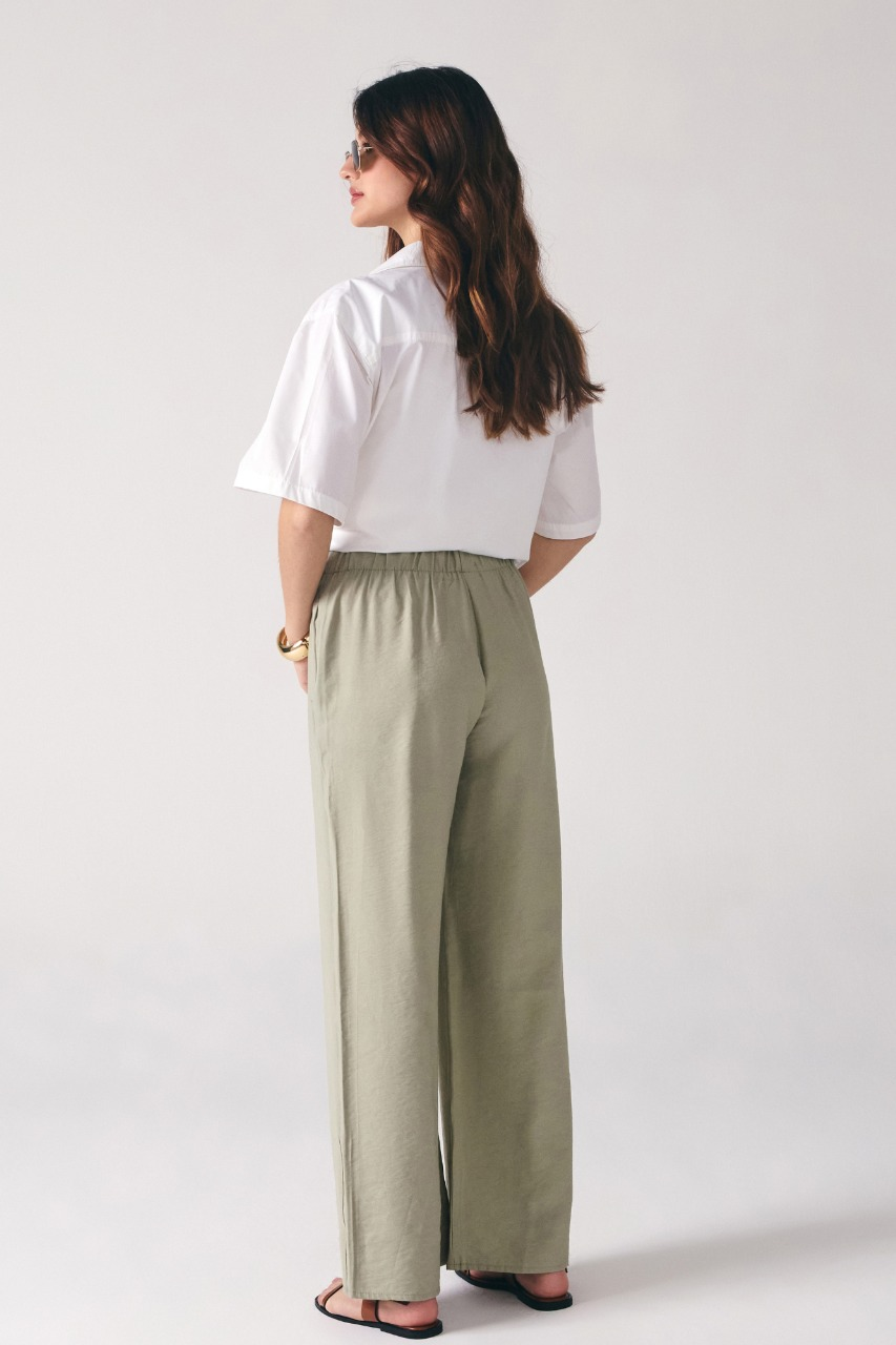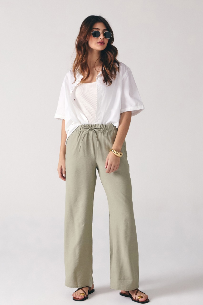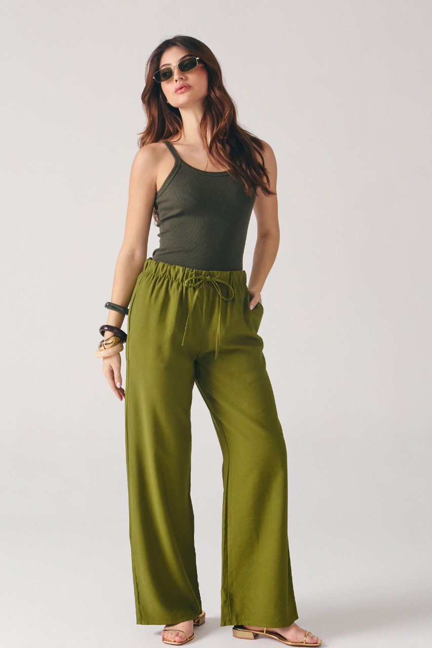 A calça reta com cós de elástico e bolsos é a união perfeita entre funcionalidade e elegância. Com modelagem reta, ela oferece caimento alinhado e confortável, ideal para quem busca liberdade de movimento sem perder o estilo.