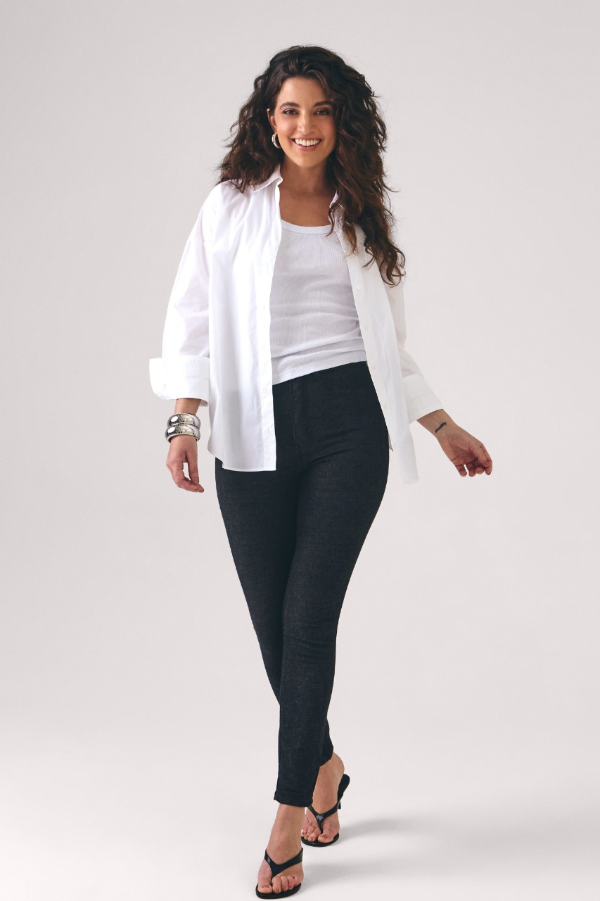 Com modelagem justa e moderna, valoriza a silhueta sem abrir mão da mobilidade, sendo ideal para compor looks que vão do dia a dia ao estilo mais sofisticado. A cor preta é atemporal e extremamente versátil, combinando com camisetas, camisas, croppeds ou blazers, além de ser perfeita para usar com tênis, sandálias ou salto alto.