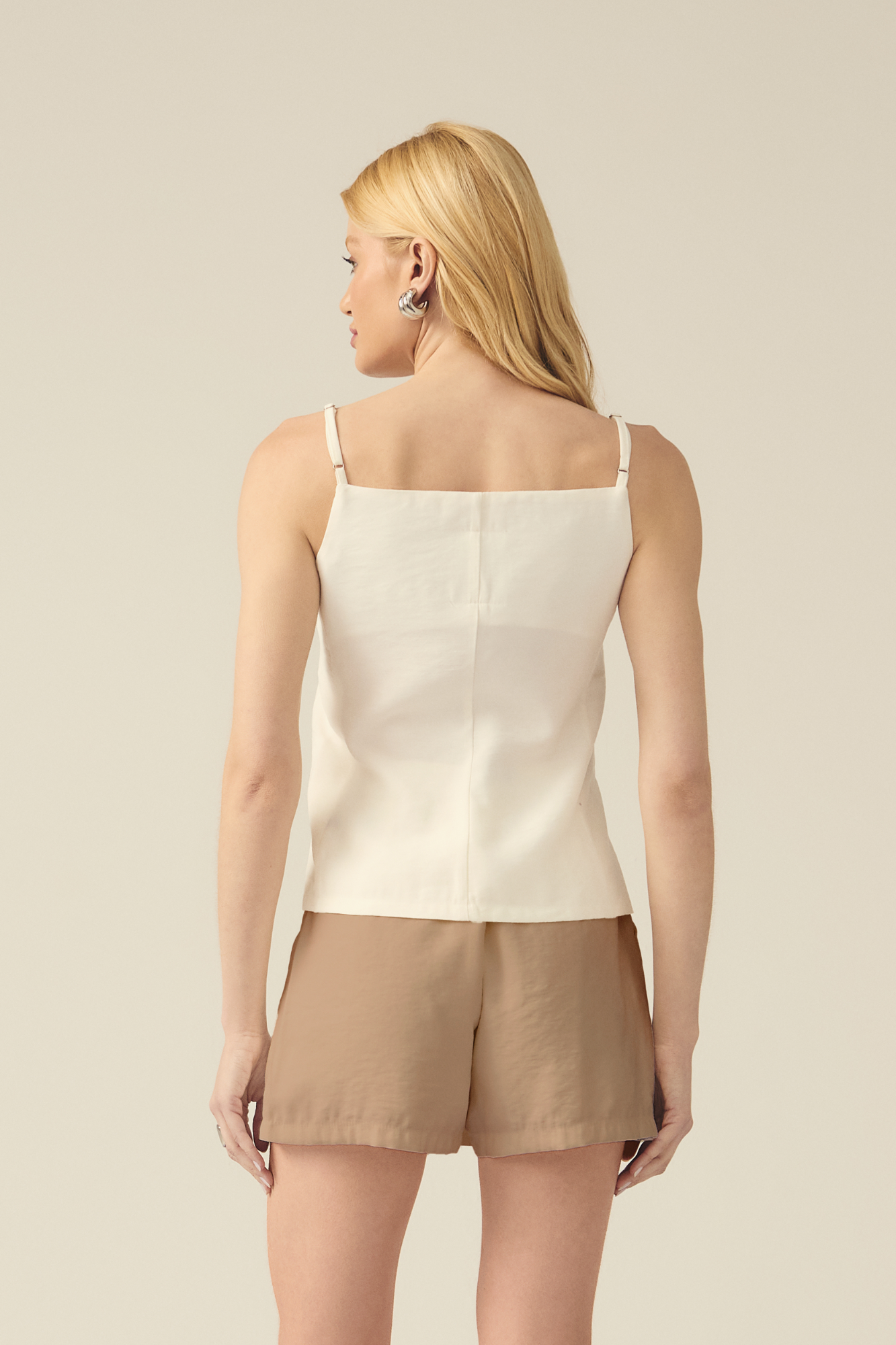 Moderno e elegante, o colete é confeccionado em tecido leve com acabamento refinado, garantindo conforto e um caimento impecável. Seu design estruturado com botões metálicos frontais valoriza a silhueta e traz um toque sofisticado, tornando a peça ideal para composições que buscam unir estilo, leveza e modernidade.
