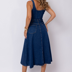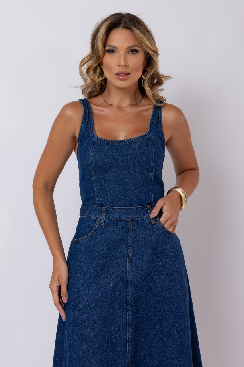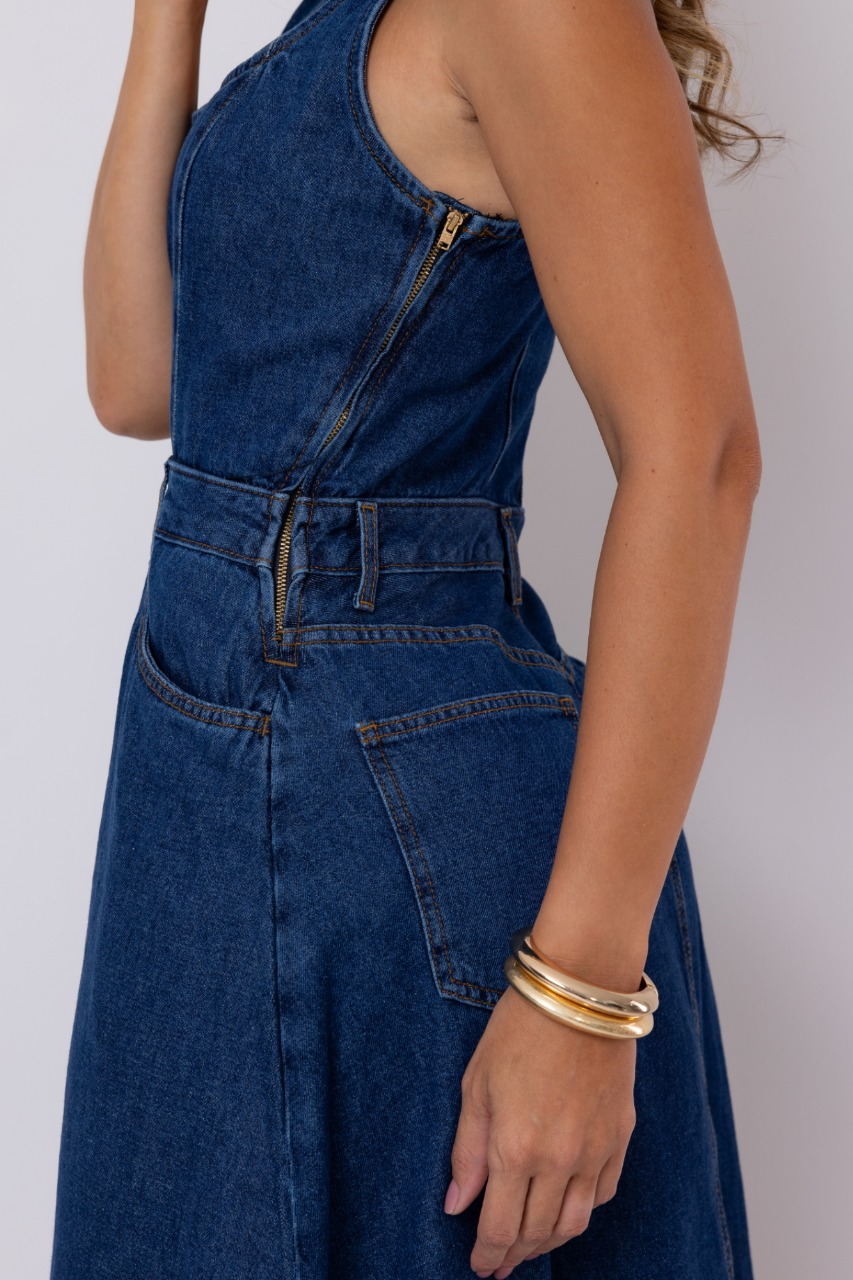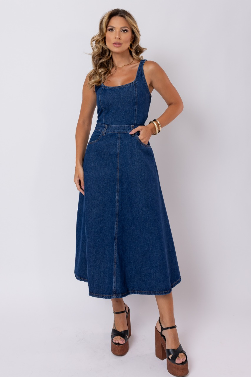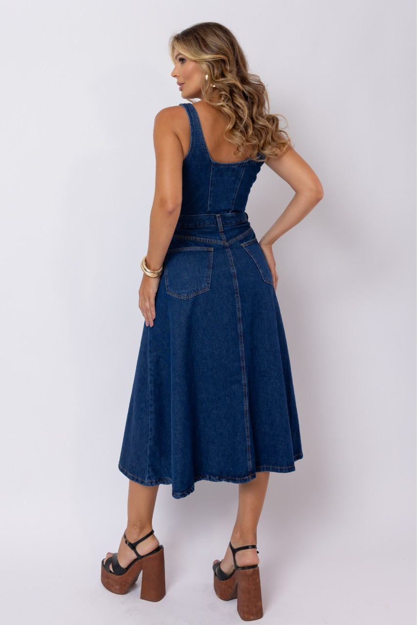 O Vestido Midi Jeans é a peça perfeita para quem busca estilo e praticidade. Com comprimento midi, modelagem moderna e caimento estruturado, ele traz um toque sofisticado ao visual. Confeccionado em jeans de alta qualidade, combina conforto e durabilidade. O design versátil permite composições para diversas ocasiões.